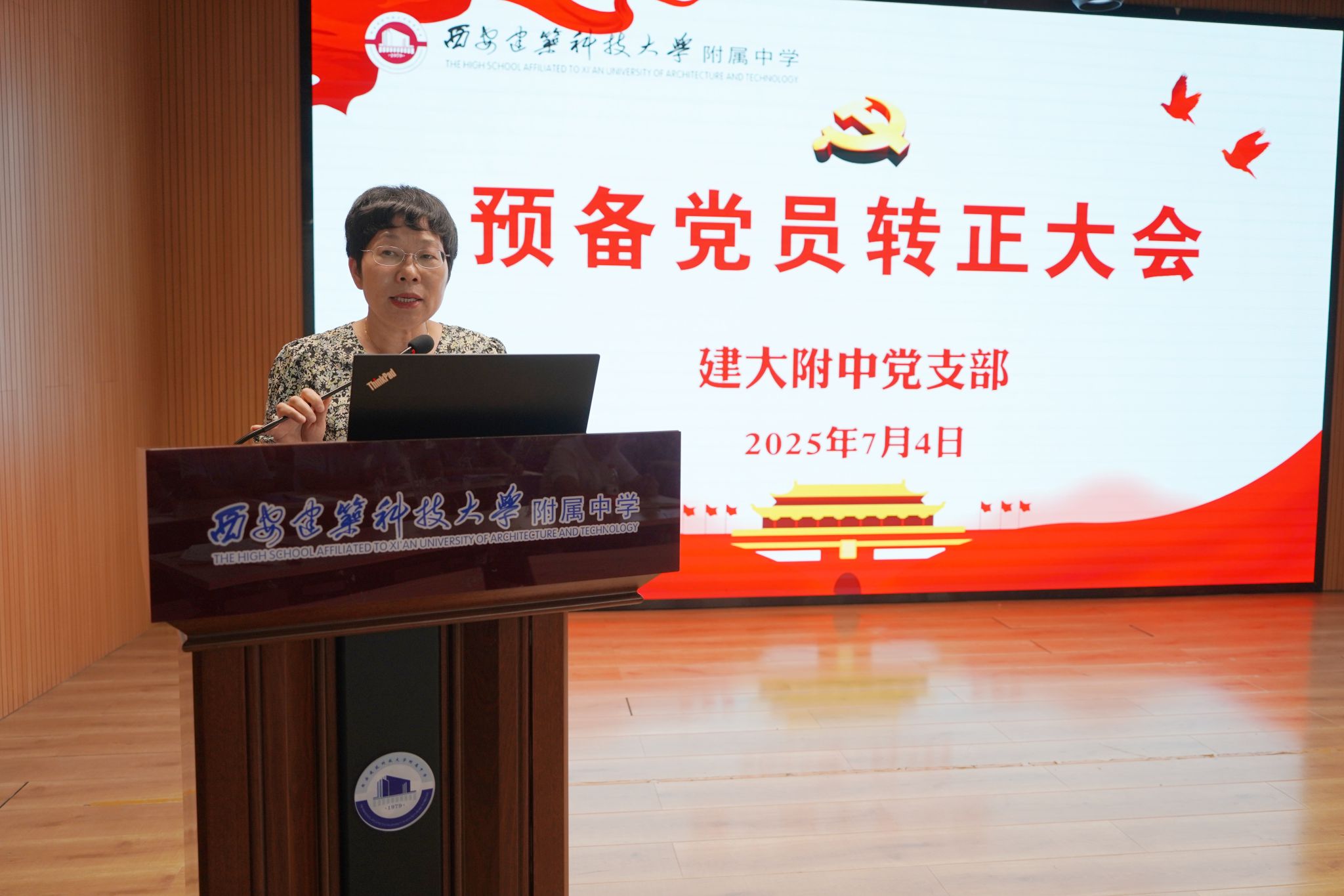 为进一步加强党组织建设,严格党员发展程序,2025年7月4日,建大附中党支部在六楼活动中心召开党员转正大会。会议由党支部副书记、副校长姚书雅主持,全体党员参与此次会议。