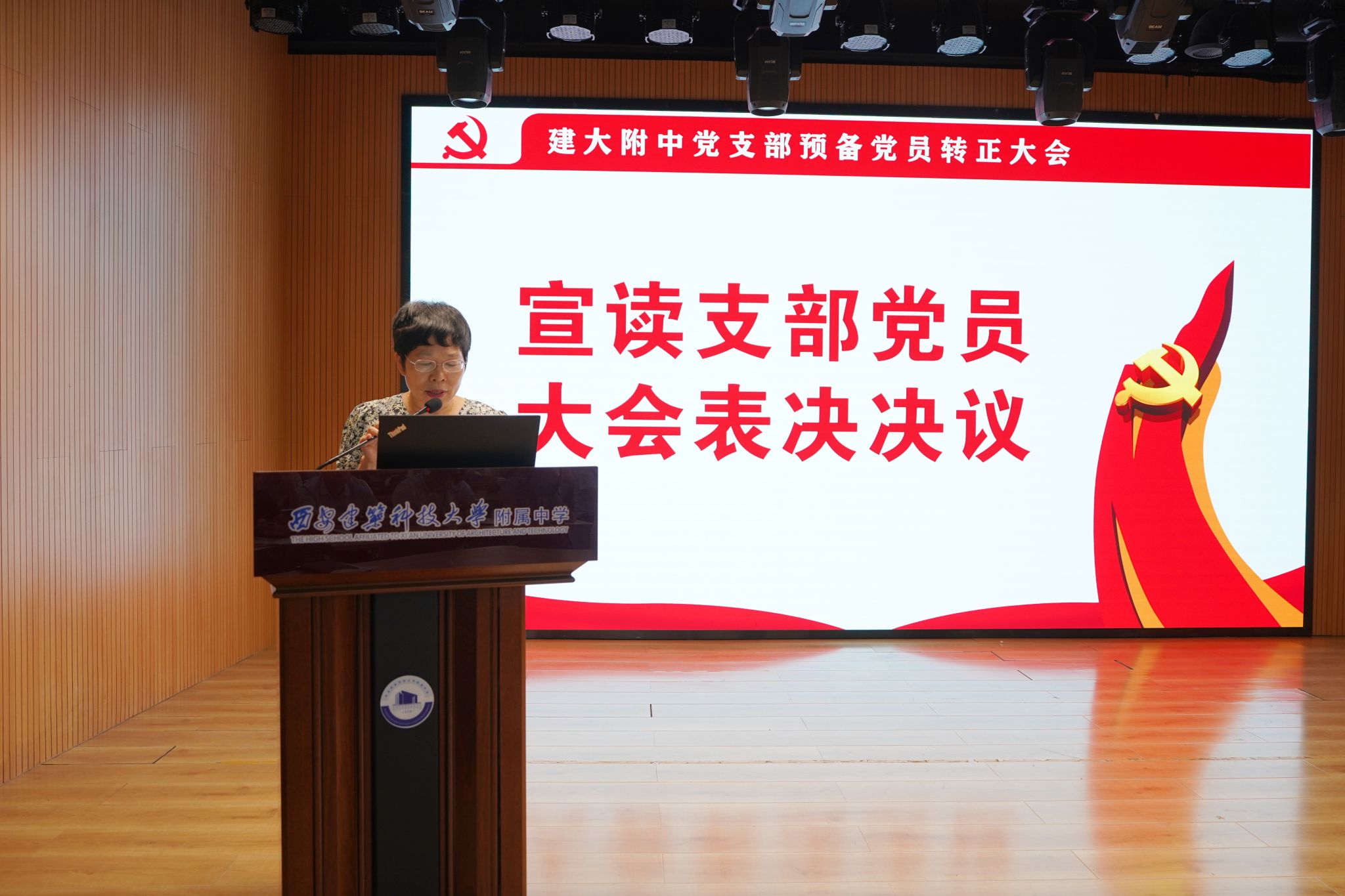 此次党员转正大会的顺利召开,为建大附中党支部注入了坚实力量,激励全体党员以更高标准要求自己,立足岗位,践行使命,为学校的发展和党的教育事业不懈奋斗。