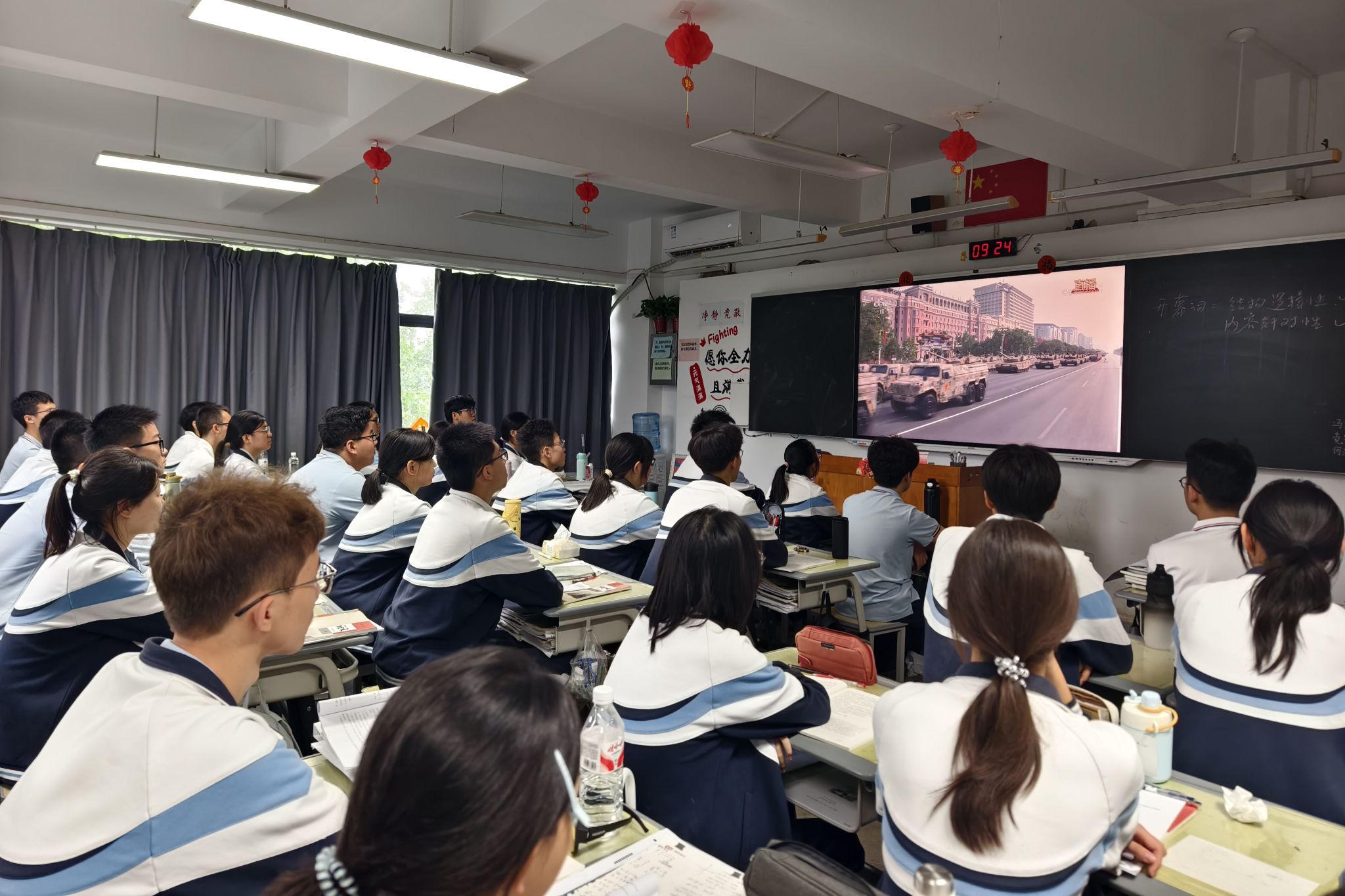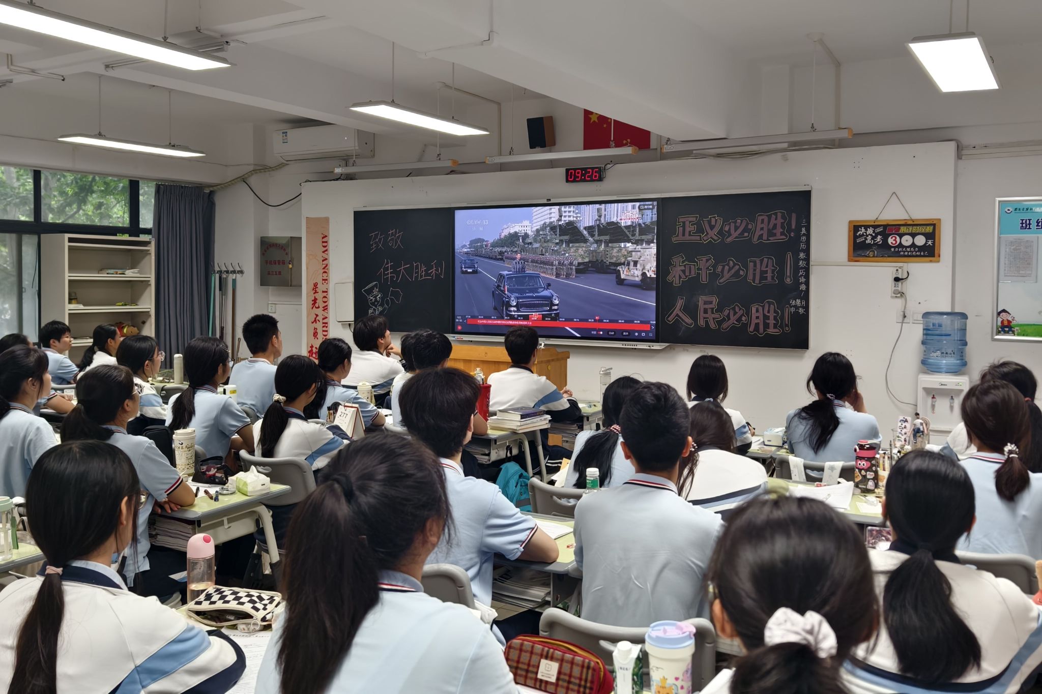 9月3日上午,纪念中国人民抗日战争暨世界反法西斯战争胜利80周年大会在北京天安门广场隆重举行。西安建筑科技大学附属中学全体师生观看大会直播盛况,共同铭记历史、缅怀先烈、珍爱和平、开创未来。