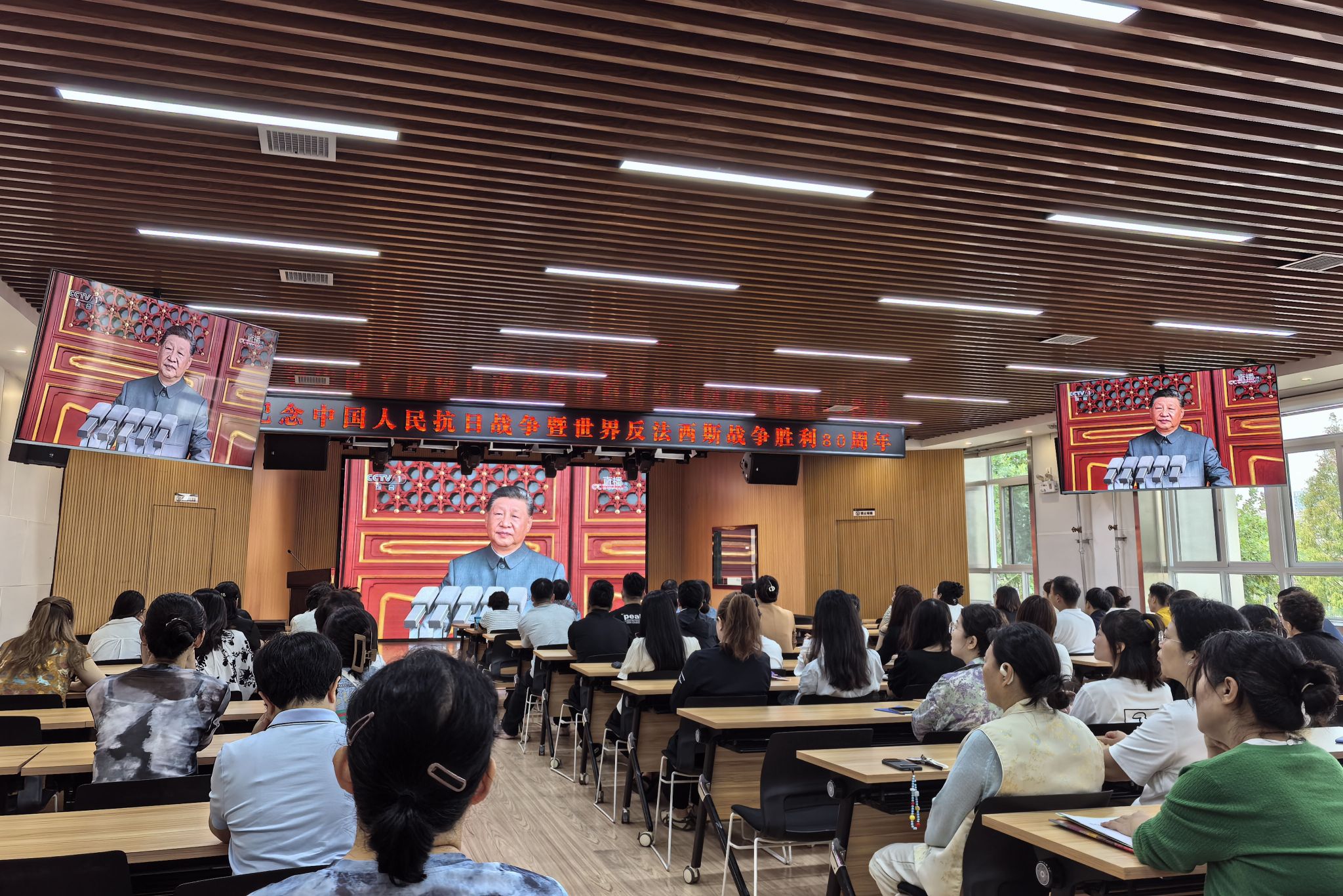 上午9时,大会正式拉开帷幕,大家全神贯注,沉浸于大会的庄严氛围之中,认真聆听习近平总书记在大会上的重要讲话。习近平总书记的重要讲话,深情回顾了中国人民抗日战争那段艰苦卓绝的历程,以及取得的伟大胜利,生动展现了中国人民在抗战中所迸发的伟大民族精神与炽热的爱国情怀。这一讲话如同一股强大的精神力量,深深鼓舞着在场的每一位师生,让大家内心充满了力量。