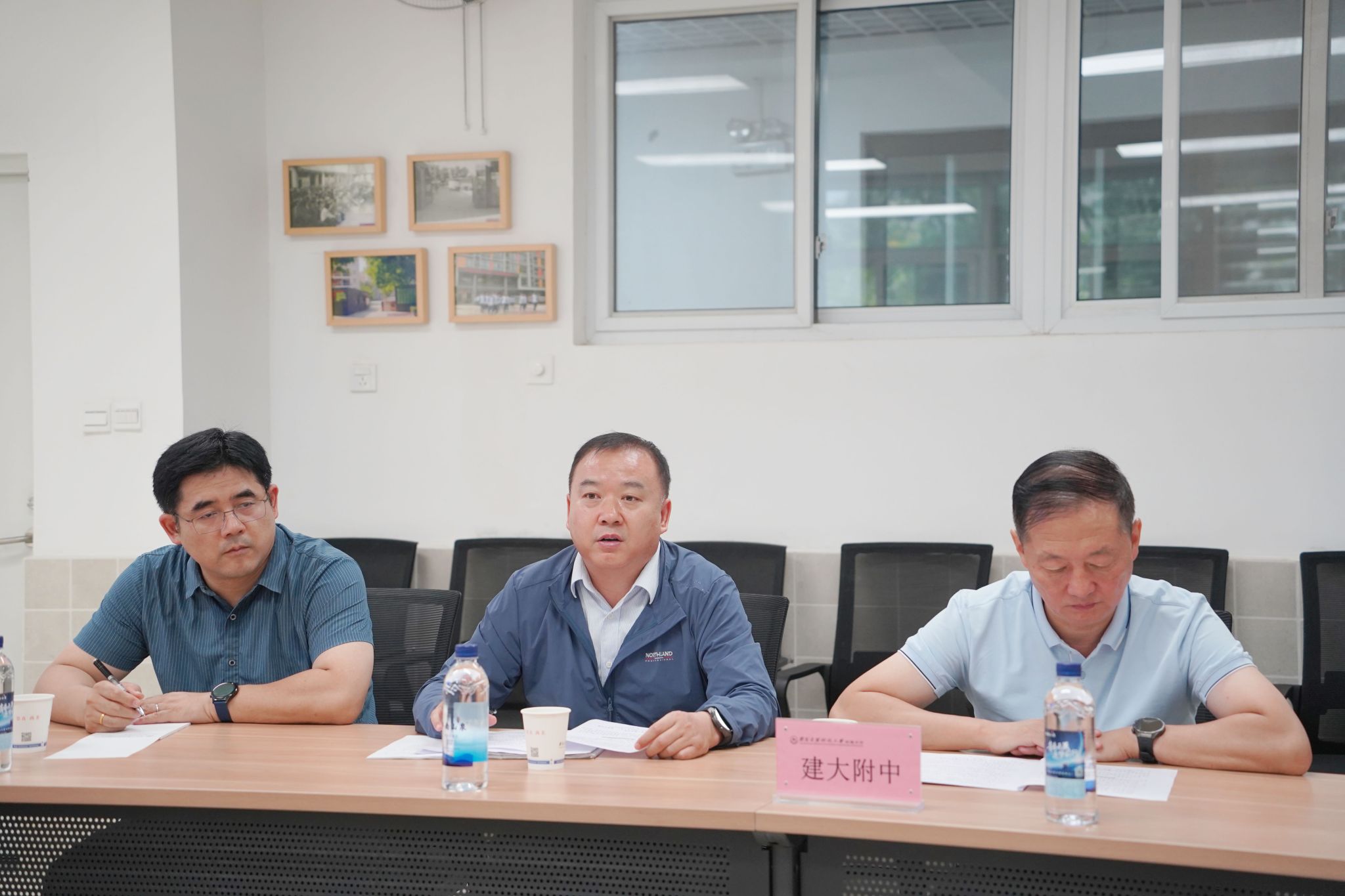 副校长胡道平在汇报中指出,两校已明确未来三年合作重点:一是强化管理团队对接;二是通过“校际互访+线上同步”深化联合教研;三是实施教师结对帮扶,助力青年教师成长;四是依托建大及附中资源开展特色学生活动;五是针对高三制定专项计划,提供专题讲座及考前指导。