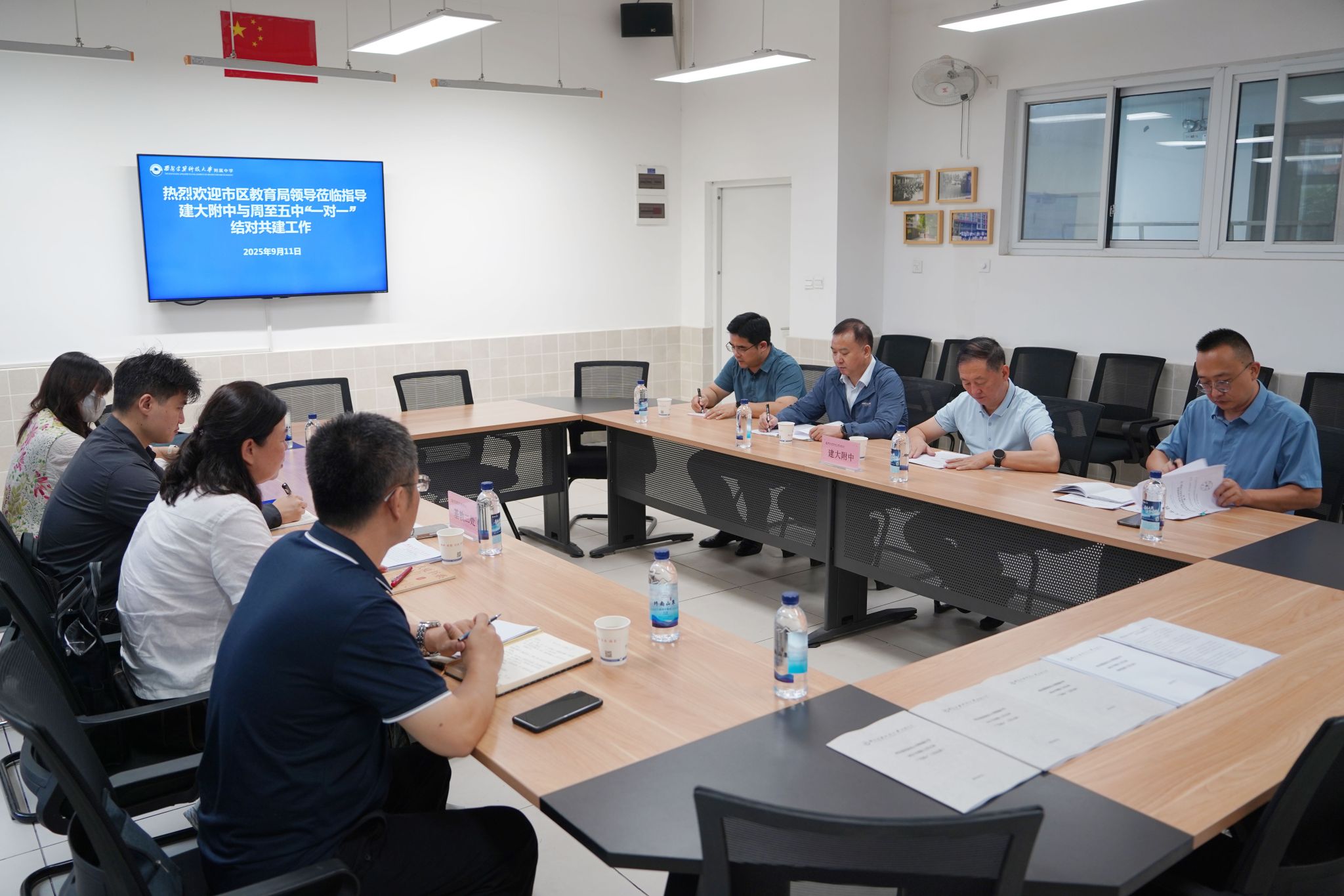 2025年9月11日,西安市教育局基础教育二处于晓燕,碑林区教育局基教科科长雷涛等一行4人组成的调研指导组,实地调研并指导建大附中与周至五中“一对一”结对共建工作。建大附中党支部书记、校长刘文震等领导陪同调研。